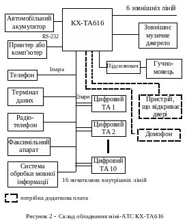 На рис.2 показане обладнання гібридної АТС КХ-TА616 фірми PANASONIC. Система має блоково-модульну конструкцію – кількість внутрішніх ліній можна збільшити від 16 до 24 за допомогою спеціальних плат.