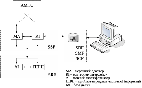 приймач-передавач частотної інформації (ППЧІ), що забезпечує прийом від користувача додаткової номерної інформації та дозволяє реалізувати ряд додаткових функціональних можливостей, що полегшують користування послугами IN, наприклад, режим мовного меню;