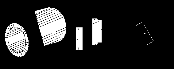 ассмотрим вначале устройство отдельных узлов датчика, в котором двигатель совершает возвратно-вращательное движение. Для этого применяют так называемые моментные двигатели постоянного тока. Они питаются от управляющего устройства, вырабатывающего напряжение специальной формы. Упрощенная конструкция и некоторые детали такого двигателя изображены на рис.5