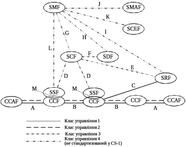 | SMF | Service Management Function, Функція експлуатаційної підтримки та адміністрування послуг | Забезпечує надання послуг IN і адміністративне управління послугами. |