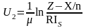 На второй логарифматор сигнал Х подается через инвертор. Поэтому выходное напряжение микросхемы DA2 будет определяться формулой