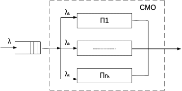 Коефіцієнт завантаження кожного з приладів у середньому визначається співвідношенням: