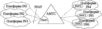 При підключенні платформи IN із внутрішньою функцією взаємодії (IWF1) необхідною умовою є підтримка обладнанням АМТС функції комутації послуг і можливості взаємодії із зовнішньою логікою послуги згідно з протоколом INAP.