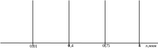 Оптичний діапазон на шкалі електромагнітних хвиль охоплює проміжок від 0.4 до 4 мкм (рис.1), що відповідає частотам близько 1014 Гц .