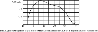 Потери мощности из-за уменьшения дифференциального коэффициента усиления запросной антенны при отклонении угла места Δθ от его значения, при котором коэффициент усиления имеет максимум, можно определить по ДН суммарного луча антенны в вертикальной плоскости, показанной на рис.4.