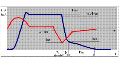 По мере освобождения от них базового перехода j2 тиристор начинает запираться. Этот процесс характеризуется резким уменьшением прямого тока IТ тиристора за короткий промежуток времени до небольшой величины IТQT (см. рис. 2). Сразу после запирания базового перехода j2 начинает закрываться переход j3, однако за счёт энергии, запасённой в индуктивности цепей управления он ещё некоторое время находится в приоткрытом состоянии.
