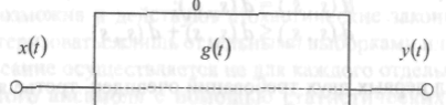 Тут послідовність x(t) є сукупністю вхідних даних, y(t) – сукупністю вихідних даних, а зв'язок між ними встановлює так звана перехідна характеристика g(t):
