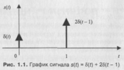 У задачах аналізу сигналів часто використовують так звану дельта-функцію або функцію Дірака, яка є нескінченно вузьким імпульсом з нескінченною амплітудою, розташований при нульовому значенні аргументу функції. Площа цього одиничного імпульсу (рис. 2) дорівнює одиниці: