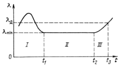 Она имеет три явно выраженных периода: приработки I, нормальной эксплуатации II, и износа III.