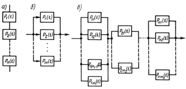При последовательном включении элементов (рис. 3.1, а) для надежной работы схемы необходима работа всех функциональных элементов.