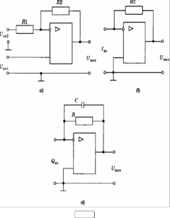 Для датчика генераторного типа, как уже отмечалось, вторичный преобразователь может и не понадобиться, если сигнал самого датчика достаточно велик. В противном случае вторичные преобразователи усиливают сигнал и при необходимости изменяют его постоянную составляющую. В этом случае используется стандартная схема операционного усилителя с отрицательной обратной связью (рис.1, а).