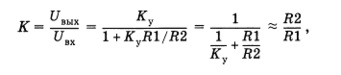 где Ку - коэффициент усиления усилителя без обратной связи. Приближенное соотношение записано в предположении, что Ку много больше требуемого значения коэффициента усиления.