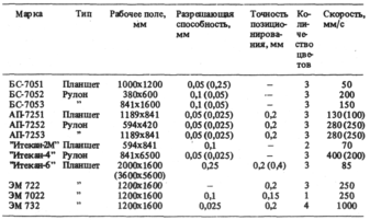 Наряду со специальными устройствами ввода широко используются специальные устройства вывода информации, такие, как графопостроители (они бывают рулонные и планшетные) и табло различного класса (электромеханические, на электронно-лучевых трубках, люминесцентных источниках, светодиодах и жидкокристаллических индикаторах). Характеристики основных отечественных графопостроителей приведены в табл. 2.
