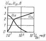 Амплитудно-частотная Зависимость напряжения характеристика ИМС К174ХА6. на выводах 14,16 ИМС К174ХА6.