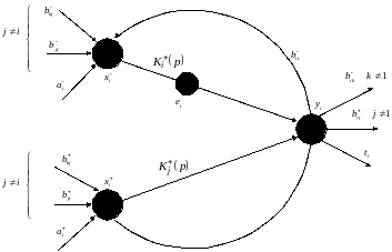 Поиск условий собственной компенсации необходимо осуществить в рамках обобщенной структуры [23]. Соотношения (5а), (5б ) для i-го активного элемента можно интерпретировать сигнальным графом, изображенном на рис. 4. Из (3), (8) следует, что