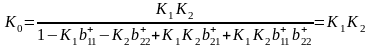 – является r-й комбинацией из q несоприкасающихся контуров, минимизация модуля дополнения возможна за счет применения контуров с положительным возвратным отношением и несоприкасающимися с указанным сквозным путем. Например, для двухкаскадного усилителя обеспечение разностных членов в Н2 и F22 возможно применением дополнительного контура