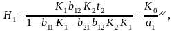 Полученные ранее соотношения не учитывали влияние составляющих, обратно пропорциональных произведению площадей усиления отдельных каскадов. Из алгоритма (18–20) знаменатель передаточной функции рассматриваемого усилителя будет иметь вид