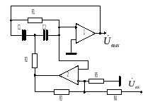 Продемонстрируем изложенное на примере синтеза низкочувствительного звена полосового типа с собственной компенсацией. Известно, что для создания канонической схемы с низкой поэлементной чувствительностью необходимо использовать симметричную RC-цепь и ОУ (рис. 8).