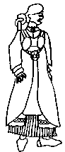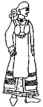 Во втором варианте к переднику добавлялся длинный нагрудник, который пристегивался к фибулам. Прекрасную иллюстрацию можно видеть на золотой фигурке для Хнафатафля