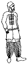 Может быть украшено вышивкой или оставлено без таковой. Могли существовать короткий и более длинный варианты. Материал - шерсть.