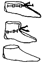 Использовалась обычная обувь, характерная для для региона и периода. Носки, в случае использования, сшиваются из полос, связанных крючком.