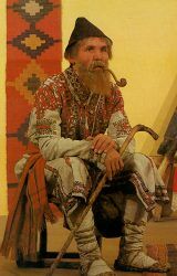| | Богатством вышивки и разнообразием орнамента отличалась мужская одежда. одной из самых интересных принадлежностей мужской одежды являлся шупар - халат из домотканого белого холста. В прошлом веке его носили в основном пожилые мужчины и предводители свадьбы, а еще раньше в такое одеяние должны были облачаться жрецы во время жертвоприношений. В украшении мужского халата, кроме вышивки, обильно применялись шелковые нашивки. Особо старательно мастерицы исполняли наспинные узоры - они были крупными, выразительными, всегда с чертами монументальности. | | |