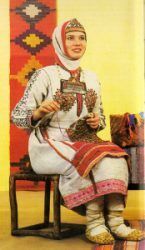 | Большой жизненной силой обладают национальные традиции в одежде. Путем сравнительного анализа отдельных частей одежды и украшений наши этнографы пришли к выводу, что чуваши лучше всех сохранили древний стиль одежды. До середины XIX века у чувашей применялись преимущественно ткани домашнего производства. Этому способствовала замкнутость натурального хозяйства. Пока употреблялись растительные краски собственного изготовления, окраска пряжи была достаточно сложным и трудоемким процессом и холст был белым. Но белая одежда быстро пачкается, и как только в быт у чувашей проникают анилиновые краски, а вместе с разложением натурального хозяйства слабеет непоколебимость старины, начинается окрашивание пряжи. Еще в конце XVIII века низовые чувашки начинают ткать пестрядь. | |||