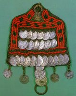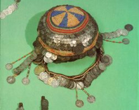 | Для украшения головных уборов мастерицы выбирали монеты не только по их размерам, но и по звучанию. Монеты, пришиваемые к остову, прикреплялись плотно, а свисающие с краев - свободно, и между ними оставались промежутки, чтобы в о время танцев или хороводов они издавали мелодичные звуки. | | ||