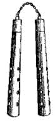 Нунчаку (Нунтяку) - традиционное ударно-раздробляющее холодное оружие в странах Юго-Восточной Азии, Китае и Японии. Состоит из двух (реже 3,4 и даже 5) деревянных ударных элемента (дубинка), соединенных между собой подвесом. Длина ударных элементов 25-35 см, длина подвеса у китайского варианта 20-30 см, у японского - по ширине кисти руки владельца - 7-11 см. В ряде зарубежных стран Н. выпускаются промышленностью из современных материалов (металла, пластмассы и т.д.). Масса ударных элементов и боевых нунчак не менее 100 г. каждого, у спортивных нунчак, предназначенных для обучения и тренировок, меньше 100 г. (обычно легкие, из бамбука). Высокоэффективное применение нунчаку требуют специального обучения и длительной тренировки, что позволяет осуществлять нападение и защиту не только путем нанесения ударов, но и удушения противника или ущемления его конечностей.