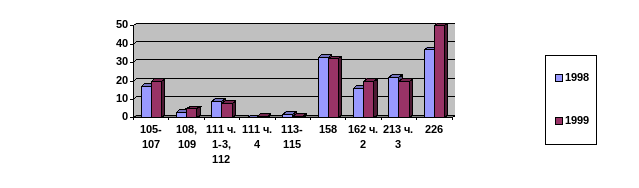 В структуре преступности, по-прежнему, доминируют тяжкие и особо тяжкие преступления, удельный вес которых в общем числе зарегистрированных составляет 68,2%. При этом возросли кражи (+26,8%), разбои (+15,1%), грабежи (+18,3%), причинение тяжкого вреда здоровья (+1,0%).