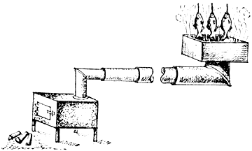 Для него годится рыба со сроком засолки более суток, отмочка может быть проведена «на глазок». В качестве коптильни использовалась обычная железная печка «буржуйка» с парой дополнительных колен на трубе, чтобы температура дыма была в районе 50...60°. Поддувало прикрывалось для обеспечения тления в топке, а рыба развешивалась в некотором удалении от среза трубы в зоне смешивания дыма с воздухом. Для копчения достаточно одного светового дня. Вкус рыбы несколько необычный, а внешний вид и аромат ближе к горячему копчению. Эта технология в настоящее время широкого распространения не получила, но интересна по своей простоте и большим возможностям для экспериментирования.