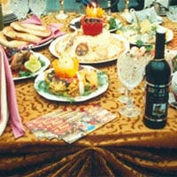 Во время торжественных приемов (обедов, ужинов и т.п.) за столом предлагается по 3—4 вида различных вин, к каждому блюду - свое.