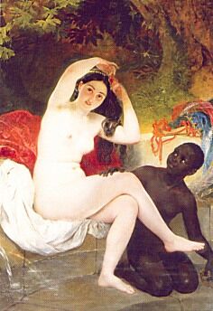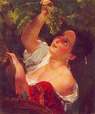 Выехав в Италию как пенсионер Общества поощрения художеств, жил и работал там в 1823-35. Впечатления "полуденного края", его природы и искусства помогли молодому Брюллову претворить опыт академического классицизма, учебного копирования антиков в живые образы, полные чувственного обаяния. Уже для ранних картин художника характерны виртуозный рисунок и композиция, эмоциональный, теплый колорит ("Итальянский полдень", 1827, Русский музей; "Вирсавия", 1832, Третьяковская галерея). Он выступает и как мастер светского портрета, превращая натурный мотив в образец райски идиллической гармонии ("Всадница (Дж. и А. Паччини)", 1832, там же).