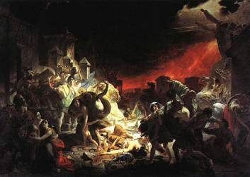 конце 20-х годов XIX века художественная Европа была увлечена открытием Помпеи, маленького римского городка, ставшего в 79 году н. э. жертвой извержения Везувия. Почти мгновенная гибель этого города под потоками раскаленной лавы сохранила в неприкосновенности обстановку городской жизни — улицы, здания, вещи, даже людей — так, как их застигла катастрофа.