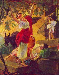 омпозиционные отодвигаются им на третий план относительно правды чувств, страстей и натуры. Построенность композиции представляется ему важной лишь тогда, когда она естественно вытекает из правды события, и это утверждение представляло огромный шаг вперед, расцениваясь многими из современников как важнейшее достижение «великого Карла» в области работы над картиной. Интересно отметить, что только после картин, раскрывающих ту или иную жизненную ситуацию, Брюллов начинает требовать композиции с правильным построением. Иногда он предлагает даже мифологические сюжеты, лишь бы они не мешали правде и естественности композиционного решения.
