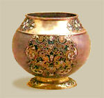 В последней четверти XVII века, когда мастера Серебряной и Золотой палат Московского кремля в совершенстве владели многочисленными техническими приемами украшений изделий из драгоценных металлов, в ювелирном искусстве намечается новое художественное течение, отмеченное особым своеобразием и изысканностью. Наряду с пышными сплошь покрытыми чеканкой, эмалью и драгоценными камнями изделиями, начинают создаваться предметы совершенно гладкие, лишь с отдельными яркими пятнами самоцветов и эмалевых украшений.