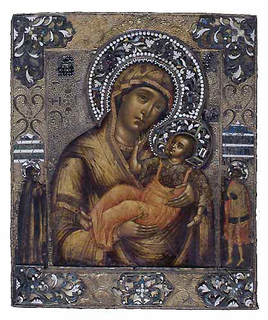 Эмалевые венцы Богоматери и Младенца, а также эмалевые наугольники имеют прямые аналогии в музейных собраниях России, подтверждающие время создания оклада. Эти аналогии являются высокохудожественными образцами работы мастерских Московского Кремля. Они схожи с деталями данного оклада не только по характеру сканных орнаментов, но и по цветовой гамме и по характеру нанесения точечной эмали других оттенков (например, темно-синий по голубому и др.).