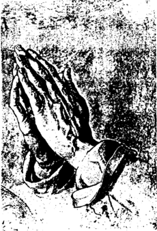 А. Дюрер. Этюд рук. Около 1508. Перо, кисть, тушь, белила, тонированная голубым бумага.