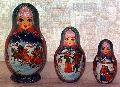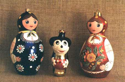 Прилавки магазинов и лотки на базарах вновь запестрили боярышнями в украшенных золотом одеждах, русскими красавицами в причудливо расписанных шалях. Часто встречаются и матрешки, изображающие популярных политических лидеров с заметным портретным сходством. Разумеется, не обходится и без курьезов. К таковым можно отнести матрешку с чужеродной росписью “под Хохлому” или “Гжель”, хотя это явление вполне объяснимо – некоторые авторы для воспроизведения декоративных элементов пользовались многочисленными альбомами, знакомящими с изделиями этих популярных промыслов, да и сами изделия были более доступны, чем лучшие образцы матрешек, уходившие в основном за рубеж.