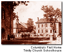 In July 1754, Samuel Johnson held the first classes in a new schoolhouse adjoining Trinity Church, located on what is now lower Broadway in Manhattan. There were eight students in the class. At King’s College, the future leaders of colonial society could receive an education designed to “enlarge the Mind, improve the Understanding, polish the whole Man, and qualify them to support the brightest Characters in all the elevated stations in life.” One early manifestation of the institution’s lofty g