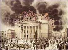 Пасмурным морозным утром 11 марта 1853 года по неизвестной причине в театре начался пожар. Пламя мгновенно охватило все здание, но с наибольшей силой огонь бушевал на сцене и в зрительном зале. "Страшно было смотреть на этого объятого огнем гиганта, - описывал пожар очевидец. - Когда он горел, нам казалось, что перед глазами нашими погибал милый нам человек, наделявший нас прекраснейшими мыслями и чувствами..."