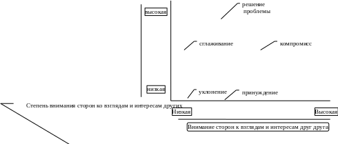 Ниже приводится рисунок, иллюстрирующий применимость разных стилей разрешения конфликта. [Шейнов В.П., Конфликты в нашей жизни и их разрешение., Минск, 1996 г., с.60-69]