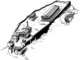 Но самым главным сооружением эпохи Перикла был новый ансамбль Афинского акрополя, который господствовал над городом и его окрестностями. Акрополь был разрушен во время персидского нашествия; остатки старых зданий и разбитые статуи были употреблены теперь на выравнивание поверхности холма Акрополя. В течение третьей четверти 5 в. до н.э. были возведены новые постройки - Парфенон, Пропилеи, храм Бескрылой Победы. Завершающее ансамбль здание Эрехтейона строилось позже, во время Пелопоннесских войн.