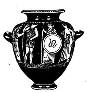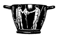 Примерами вазописи высокой классики могут служить такие сделанные во второй половине века рисунки, как «Сатир, качающий на качелях девушку во время весеннего праздника» (илл. 193 а), как «Полиник, протягивающий ожерелье Эрифиле» (так называемая «Ваза из Лечче»; илл. 193 б) и многие другие.