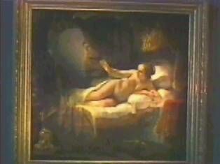 Під впливом світла, що владно проникає в спальню, воно немов обновляється, стає радісним, одухотвореним. Поступово розпалюється червоний колір. Приглушений, стриманий тон оксамитної скатертини змінюється теплом рожевих тонів тіла, інтенсивним горінням стрічок на браслетах; прозоро просвічують кінчики пальців протягненої руки. Безшумно зісковзує покривало, почуттєво оголюючи жіноче тіло. Це тіло, простонародне, уже не юне, написано з голландки, сучасниці Рембранта. Далеке від канонів класичної краси, воно підкуповує своєю життєвою правдивістю, м'якою округлістю форм. Неприбране волосся жінки, примнута подушка, туфельки, кинуті на передньому плані,— усе це додає образу відтінок задушевної інтимності і відрізняє Данаю Рембрандта від класичних жіночих образів Праксітеля й Агесандра, Джорджоне і Тиціана. І Афродіта Кнідська, і Афродіта Мілосока, і Спляча Венера, і навіть Венера Урбінська у своїй бездоганній, ідеальній красі підняті над подробицями життя і тому не можуть викликати в глядача настільки безпосередніх асоціацій і почуттів, як Даная Рембрандта. Отже, найбільшу роль у творі відіграє світло: світловий потік ніби огортає фігуру Данаї, вона вся світиться любов`ю і щастям, це світло сприймається як вираження людського почуття. До цього Рембрант написав золотий дощ у вигляді сяючих крапель. Згодом однак художник замінив їх потоком світла, який л`ється з глибини.