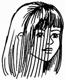 Волосы теменных зон расчесать вниз, двумя вертикальными проборами отделить пряди для челки и височных зон, остальные заколоть. Челку стричь чуть ниже бровей.