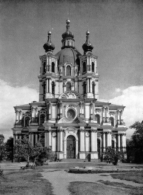 Деятельность Растрелли в основном была направлена на создание дворцовых сооружений. Но и в церковном зодчестве он оставил чрезвычайно ценное произведение - проект ансамбля Смольного монастыря в Петербурге. Строительство Смольного монастыря, начатое в 1748 г., растянулось на многие десятилетия и завершилось архитектором В.П. Стасовым в первой трети 19 в. К тому же такая важная часть всего ансамбля, как девятиярусная колокольня собора, так и не была осуществлена. В композиции пятиглавого собора и целом ряде общих принципов решения ансамбля монастыря Растрелли непосредственно исходил из традиций древнерусского зодчества. В то же время мы видим здесь и характерные черты архитектуры середины 18 в.: пышность архитектурных форм, неистощимое богатство декора.