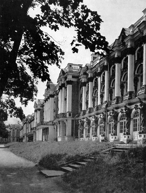 В. В. Растрелли. Большой (Екатерининский) дворец в Царском Селе (г. Пушкине). 1752-1756 гг. Вид со стороны парка.