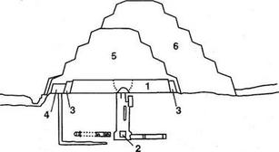 Но путь к достижению совершенства пролегал через длительные поиски и находки. Все более внушительные размеры приобретает гробница - мастаба, ставшая конструктивной основой монументальных сооружений из камня. Гробницы знати, так называемые «мастаба»( «Мастаба» по-арабски значит «скамья». Так называют гробницы знати Древнего царства современные египтяне. Это название удержалось и в науке.), состояли из подземной части, где ставили гроб с мумией, и массивной надземной постройки. Подобные постройки времени I династии имели вид дома с двумя ложными дверьми и двором, где приносились жертвы. Этот «дом» представлял собой облицованный кирпичом холм из песка и обломков камней. К такому зданию затем стали пристраивать кирпичную молельню с жертвенником. Для гробниц высшей знати уже при I династии применялся известняк. Постепенно мастаба усложнялась; молельни и помещения для статуи устраивались уже внутри надземной части, сплошь сложенной из камня. По мере развития жилищ знати увеличивалось и количество помещений в мастабах, где к концу Древнего царства появляются коридоры, залы и кладовые.