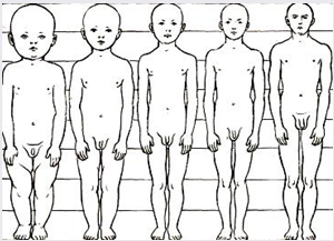 Совершенно очевидно, что размеры туловища и конечностей увеличиваются после рождения быстрее, чем размер лица в высоту.